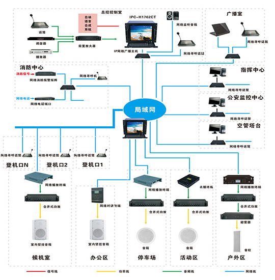 機場公共廣播系統是一個具有先進水平的自動廣播系統,它是整個機場信息系統的一個子系統,由計算機集成管理網絡系統控制,播放各類航班動態信息和機場服務信息,提高機場服務的自動化程度。方便來自不同國家和地區的旅客,系統多種語言播放及有關服務信息。