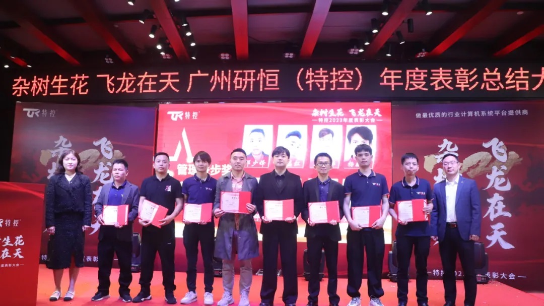 2023年,特控涌現出一批表現突出、影響廣泛的優秀員工。為表揚先進、樹立典型,特控頒發了最佳開拓獎、特別貢獻獎、優秀績效獎、管理進步獎等多種榮譽。隨后,優秀員工在場分享他們在不同崗位的經驗與感悟,并祝福公司新的一年里一展龍顏、業績長虹。