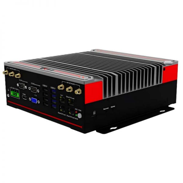 外觀設(shè)計 : 鋁合金一體成型,結(jié)構(gòu)緊湊,MiNi小巧,工藝精細,科技時尚穩(wěn)定可靠 : 純工業(yè)設(shè)計,強勁解熱熱管與純銅一體化的優(yōu)良散熱結(jié)構(gòu),全密封鋁合金箱體,大面積鋁鰭散熱,可實現(xiàn)橫向與豎向等多種放置的自然對流散熱,機箱可抗接觸式6KV強電磁干擾,DC12V-24V寬壓輸入高性能 : 支持65W及以下6/7/8/9 代1151 Intel Core i7/i5/i3 系列處理器接口豐富 : 4*LAN(Intel),6*COM,支持T-MOD模塊擴展,8*GPIO(4*USB2.0/2*RJ45/2*CAN/12DI+12DO三選一擴展),4*USB3.0+4*USB2.0,1*VGA,1*HDMI,1*DP、1*遠程開關(guān),1*一鍵還原,1*一鍵備份,1*SIM槽,1*LINE IN,1*LINE OUT,1*MIC,1*2.5寸硬盤位,1*M.2(KEY-M,2280,PCIEx4 支持SATA) , 1*M.2( KEY-B,3042/3052, PCIE+USB3.0支 持 4G/5G) , 1*MINI PCIE( 全 高 ,PCIE+USB2.0信號),1*PCIEx16,1*PCIEx4,6*天線孔