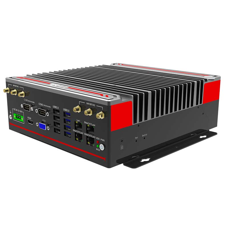 外觀設(shè)計(jì) :鋁合金一體成型,結(jié)構(gòu)緊湊,MiNi小巧,工藝精細(xì),科技時(shí)尚穩(wěn)定可靠 : 純工業(yè)設(shè)計(jì),強(qiáng)勁解熱熱管與純銅一體化的優(yōu)良散熱結(jié)構(gòu),全密封鋁合金箱體,大面積鋁鰭散熱,可實(shí)現(xiàn)橫向與豎向等多種放置的自然對(duì)流散熱,機(jī)箱可抗接觸式6KV強(qiáng)電磁干擾,DC12V-24V寬壓輸入高性能 : 支持65W及以下12/13/14代1700 Intel Core i7/i5/i3 系列處理器接口豐富 : 4*LAN(Intel),6*COM,支持T-MOD模塊擴(kuò)展,8*GPIO(4*USB2.0/2*RJ45/2*CAN/12DI+12DO三選一擴(kuò)展),4*USB3.0+4*USB2.0 1*VGA,1*HDMI,1*DP,1*遠(yuǎn)程開關(guān),1*一鍵還原,1*一鍵備份,1*SIM槽, 1*LINE IN,1*LINE OUT,1*MIC,1*2.5寸硬盤位,1*M.2(KEY-M,2280,PCIEx4 支持SATA) , 1*M.2( KEY-B,3042/3052, PCIE+USB3.0支 持 4G/5G) , 1*MINI PCIE( 全 高 ,PCIE+USB2.0信號(hào),支持WiFi/BT)